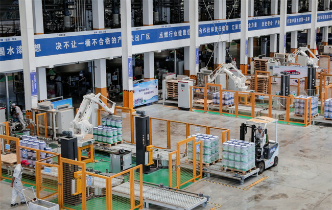 “用國際一流、自動化程度最高的生產線,一是確保產品質量穩定,並不斷創新提質;二是保證持續擴大產能。”劉善江表示,雖然在發達國家塗料市場,水漆占有率已達80%,而在我國水漆占比尚不足10%,隨著工業製造領域加快推進綠色低碳轉型,塗料市場“油轉水”也正在加速,為水漆的普及使用創造了巨大的市場發展空間。